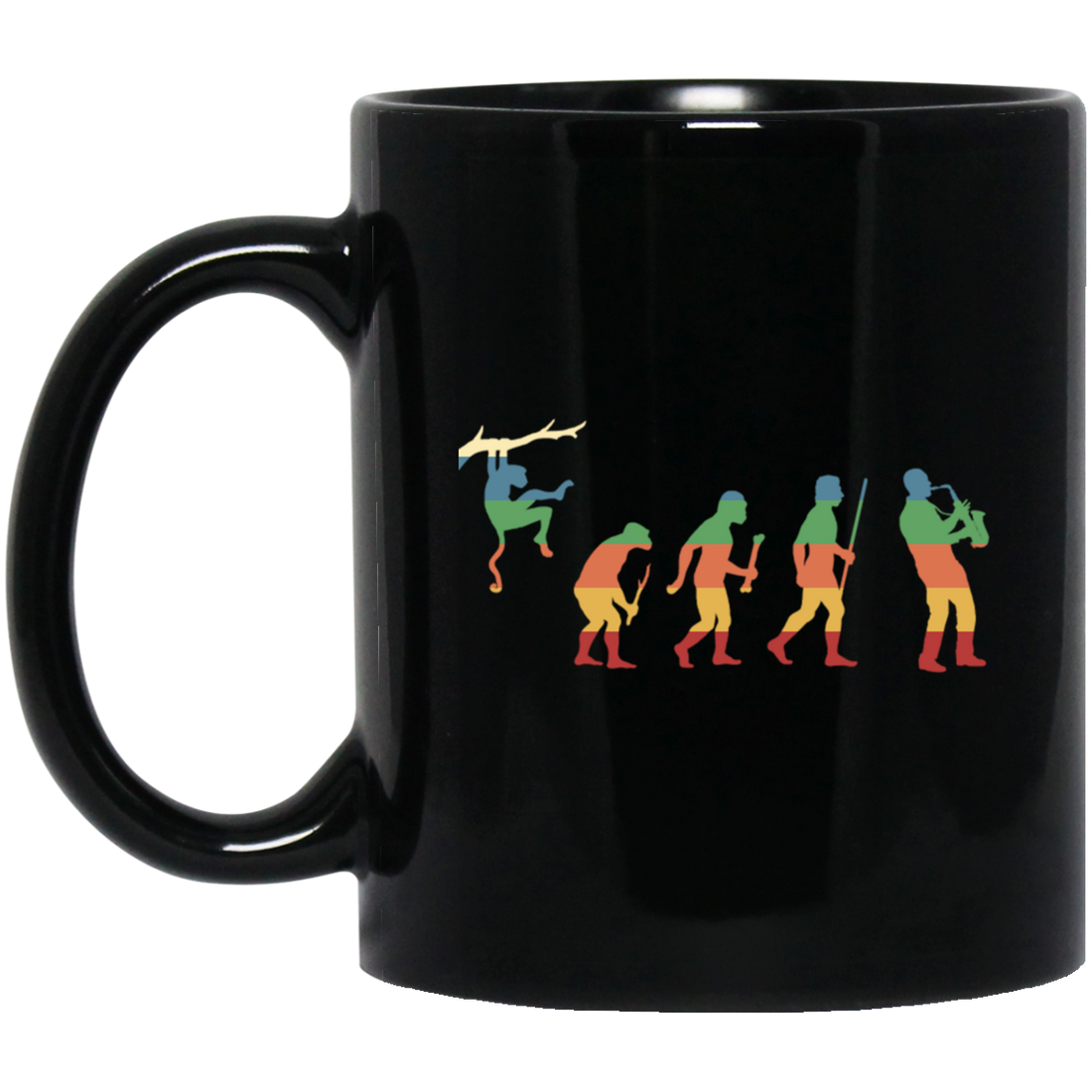 Evolution Saxophone, Music Lover, Jazz Musician, Instrument Vintage Black Mug