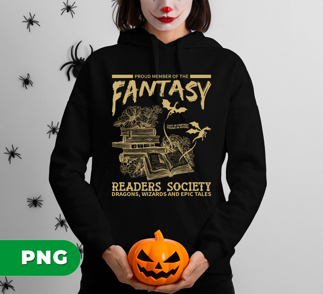 Fantasy Readers Society PNG, Book Lover Sublimation Design with Dragons and Wizards, Epic Reading Club Clipart, Magic Book Art
