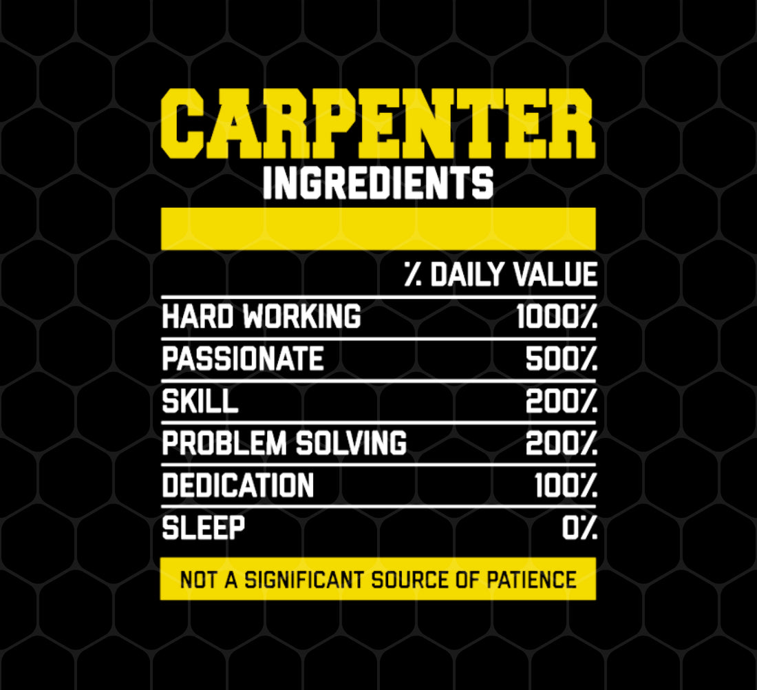 Fantastic Carpenter Ingredients, Carpenter Love Gift, Best Carpenter, Png Printable, Digital File