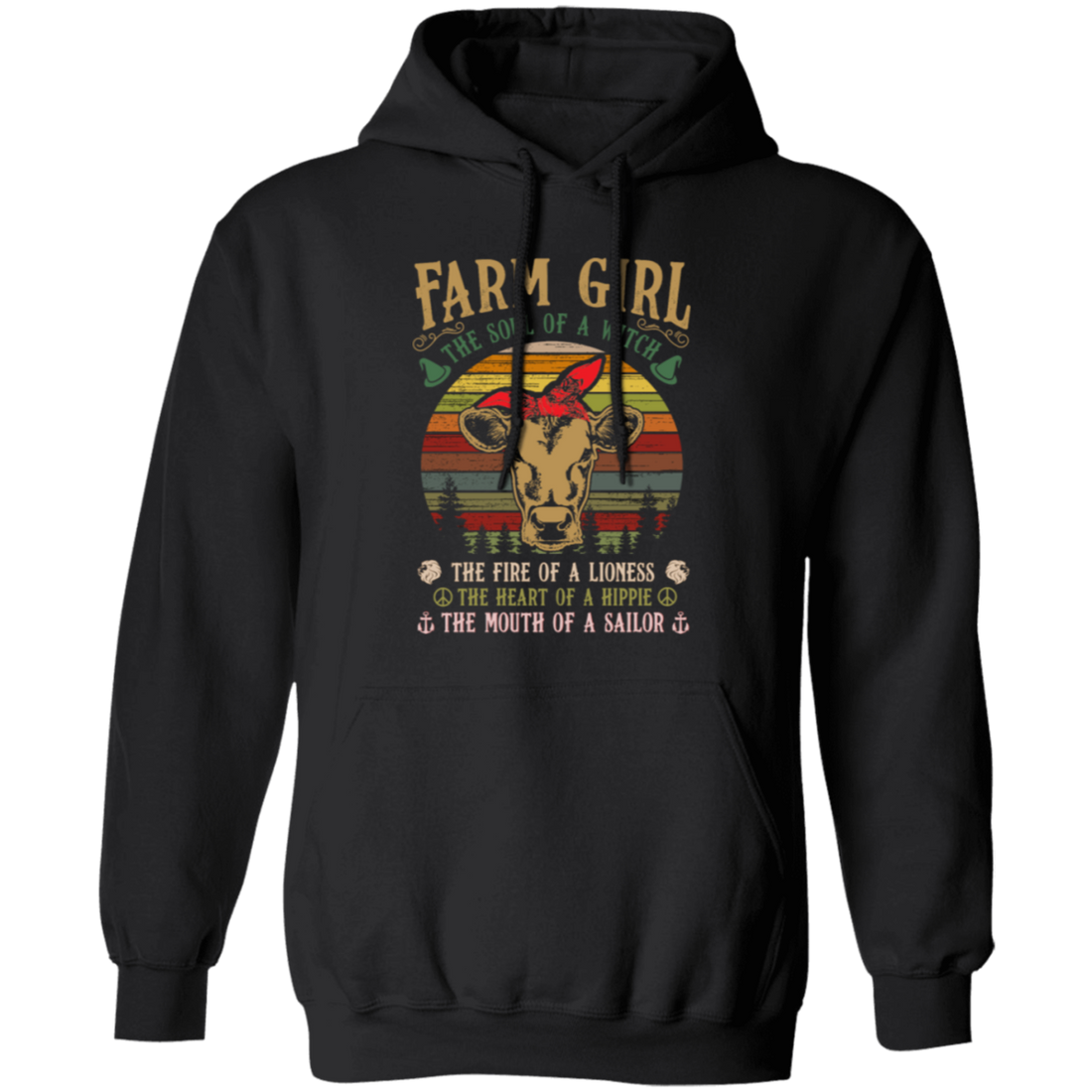 Farm Girl, Cute Cow Retro Gift, The Soul Of A Witch, Vintage Cow Pullover Hoodie