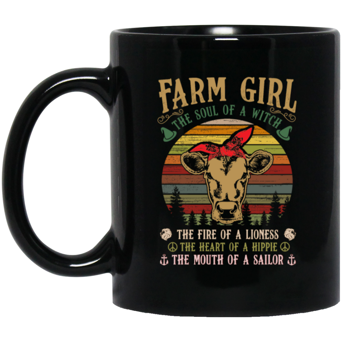 Farm Girl, Cute Cow Retro Gift, The Soul Of A Witch, Vintage Cow Black Mug