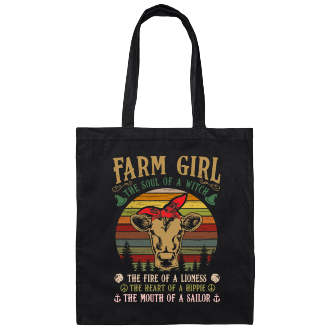 Farm Girl, Cute Cow Retro Gift, The Soul Of A Witch, Vintage Cow Canvas Tote Bag