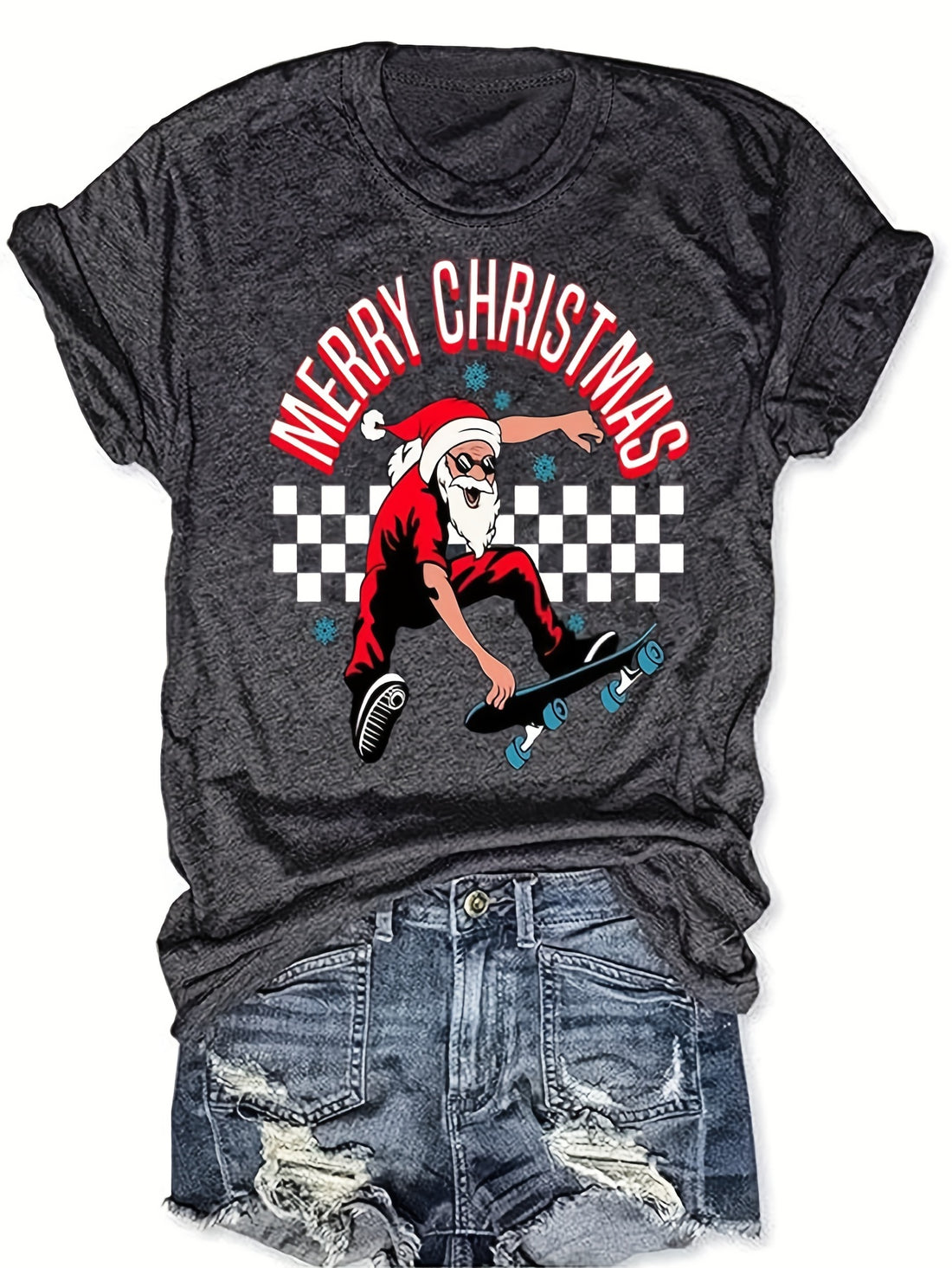 Festive Fun: Christmas Santa Letter Print T-Shirt – Must-Have Casual Top for Spring/Summer in Women's Clothing