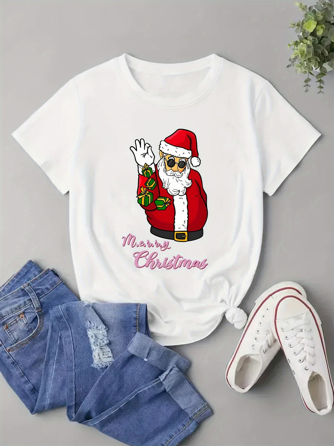 Festive Santa Claus Print T-Shirt: A Casual Holiday Essential for Women