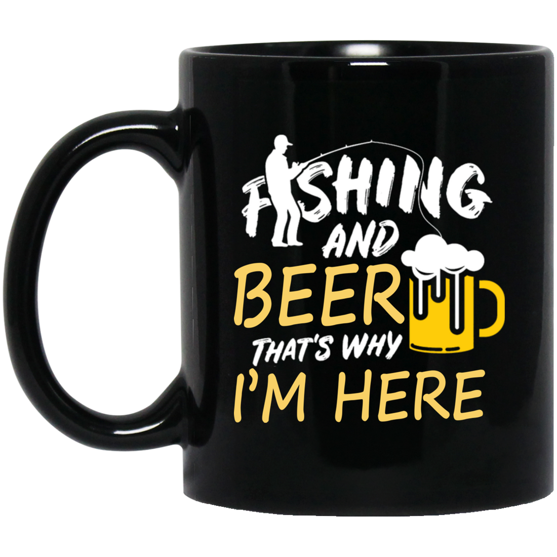 Fishing And Beer, That's Why I'm Here, I Love Fishing, Love Beer, Cheer Black Mug