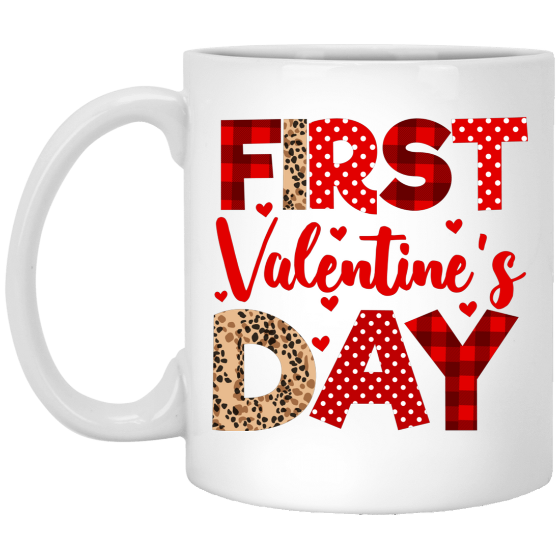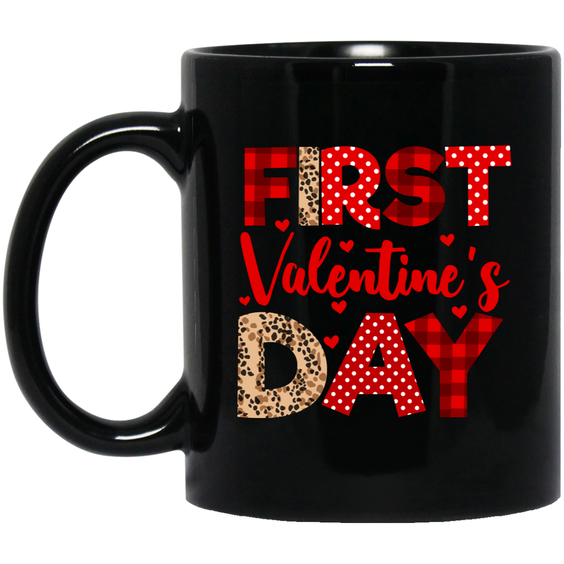 First Valentine's Day, Cute Valentine, Heart Pattern Black Mug
