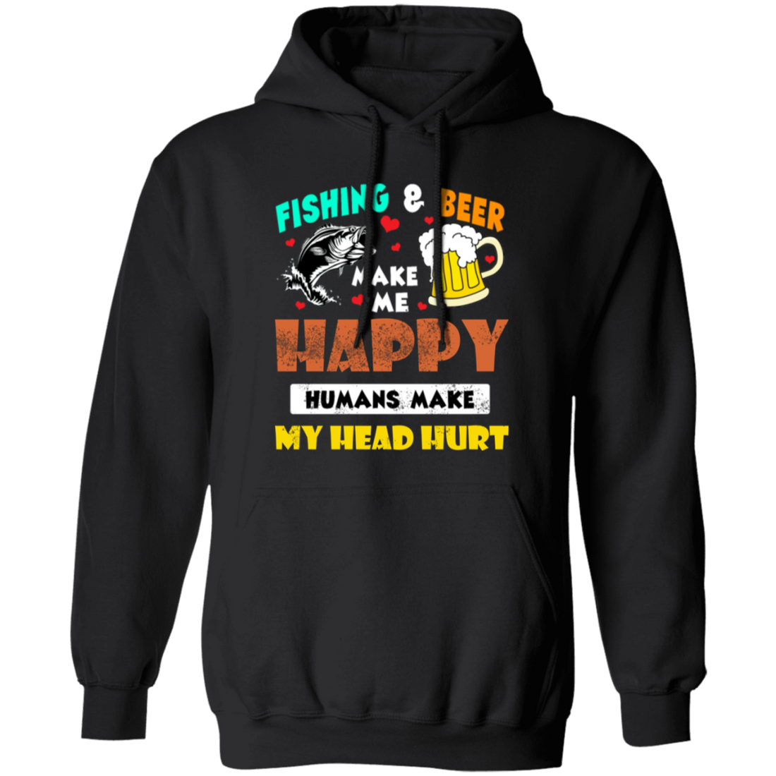 Fishing And Beer Make Me Happy, Humans Make My Head Hurt Pullover Hoodie