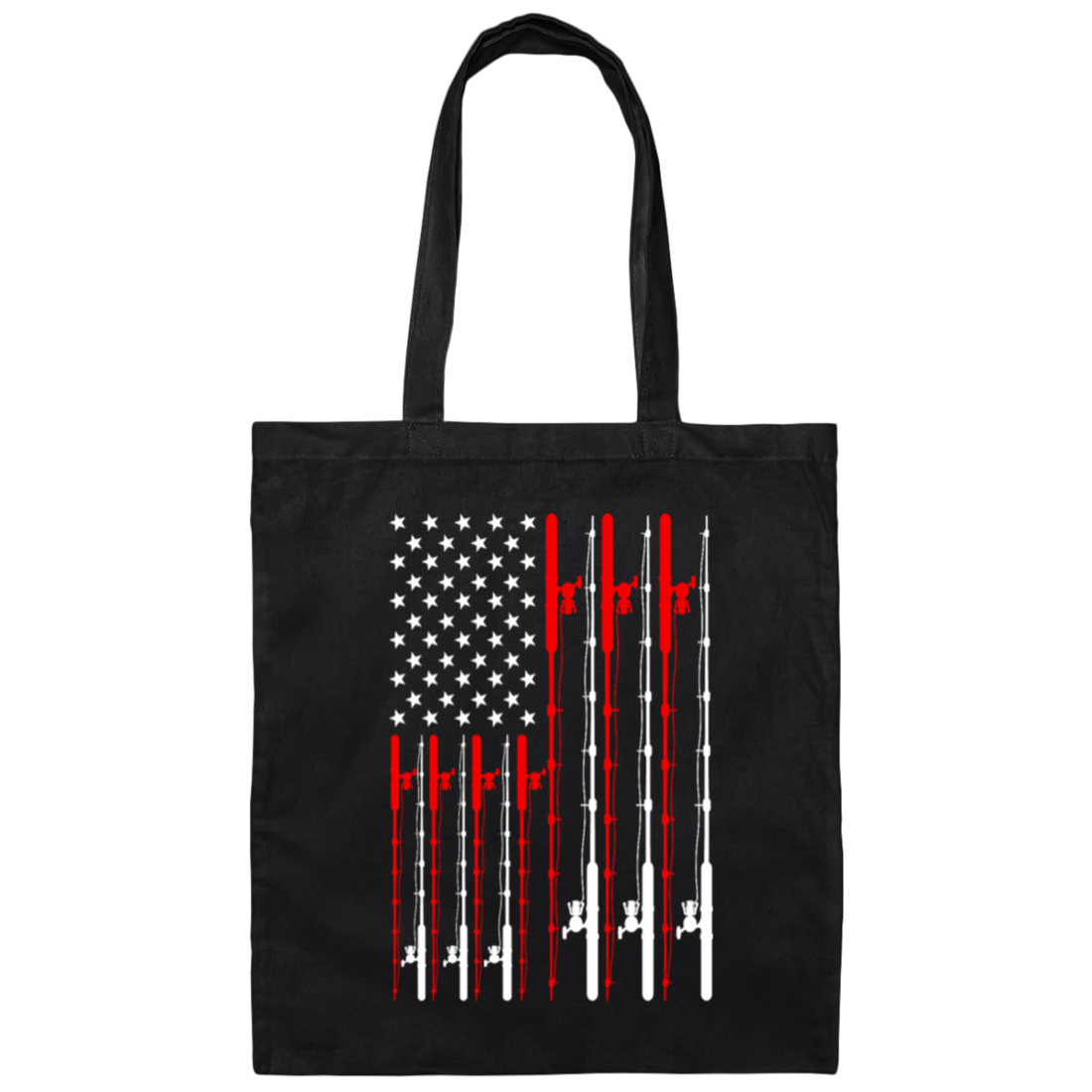Fishing Hook Gift, Fishing Rod US Flag Canvas Tote Bag