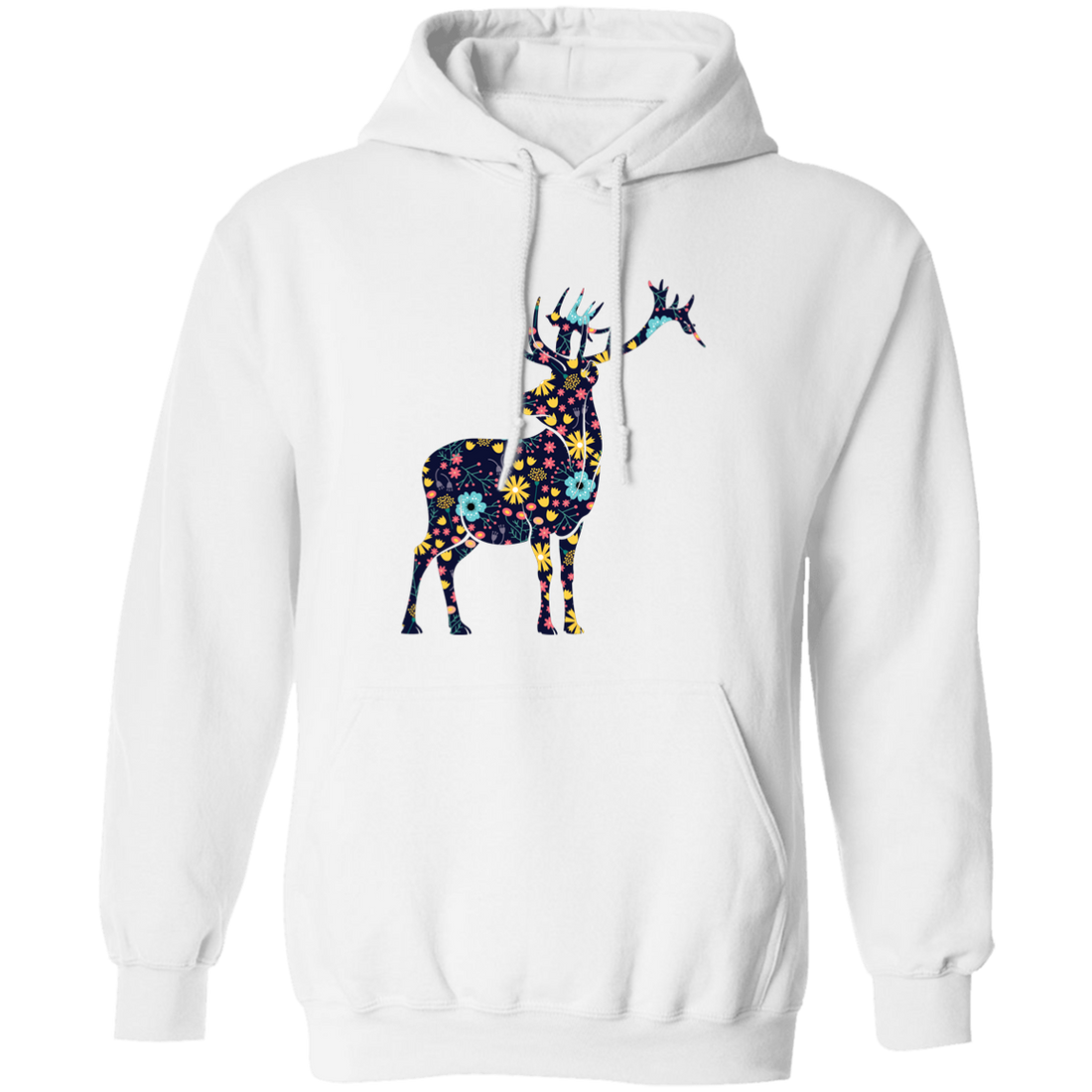 Floral Deer, Deer Silhouette, Flower Into A Deer Pullover Hoodie