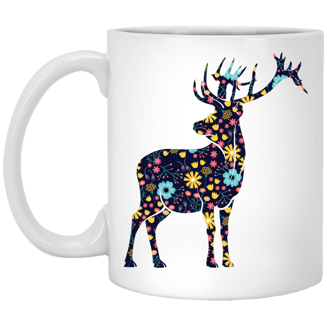 Floral Deer, Deer Silhouette, Flower Into A Deer White Mug