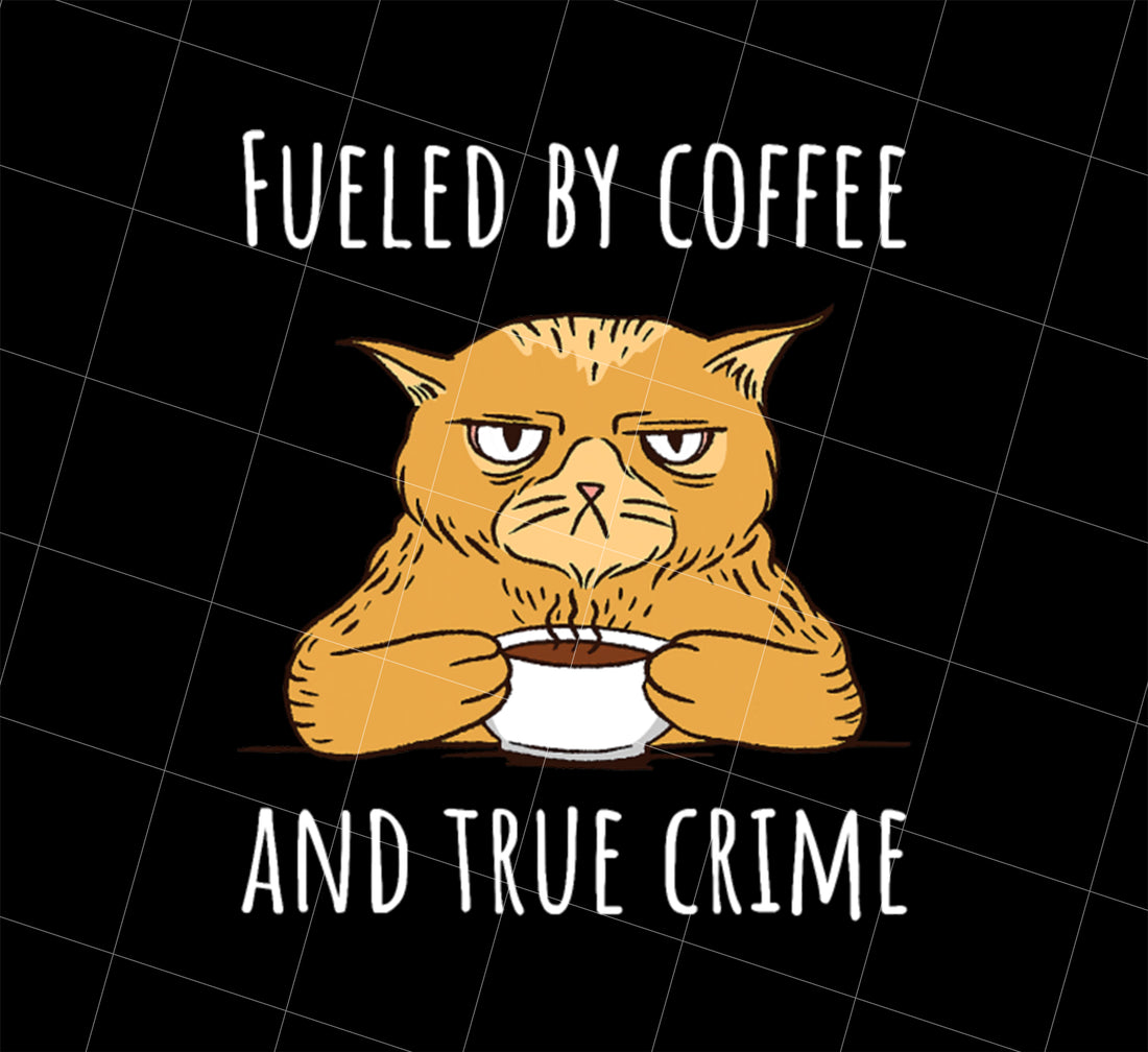 Fueled By Coffee Lover And True Crime Podcast Png, Love Cat And Coffee, Png Printable, Digital File