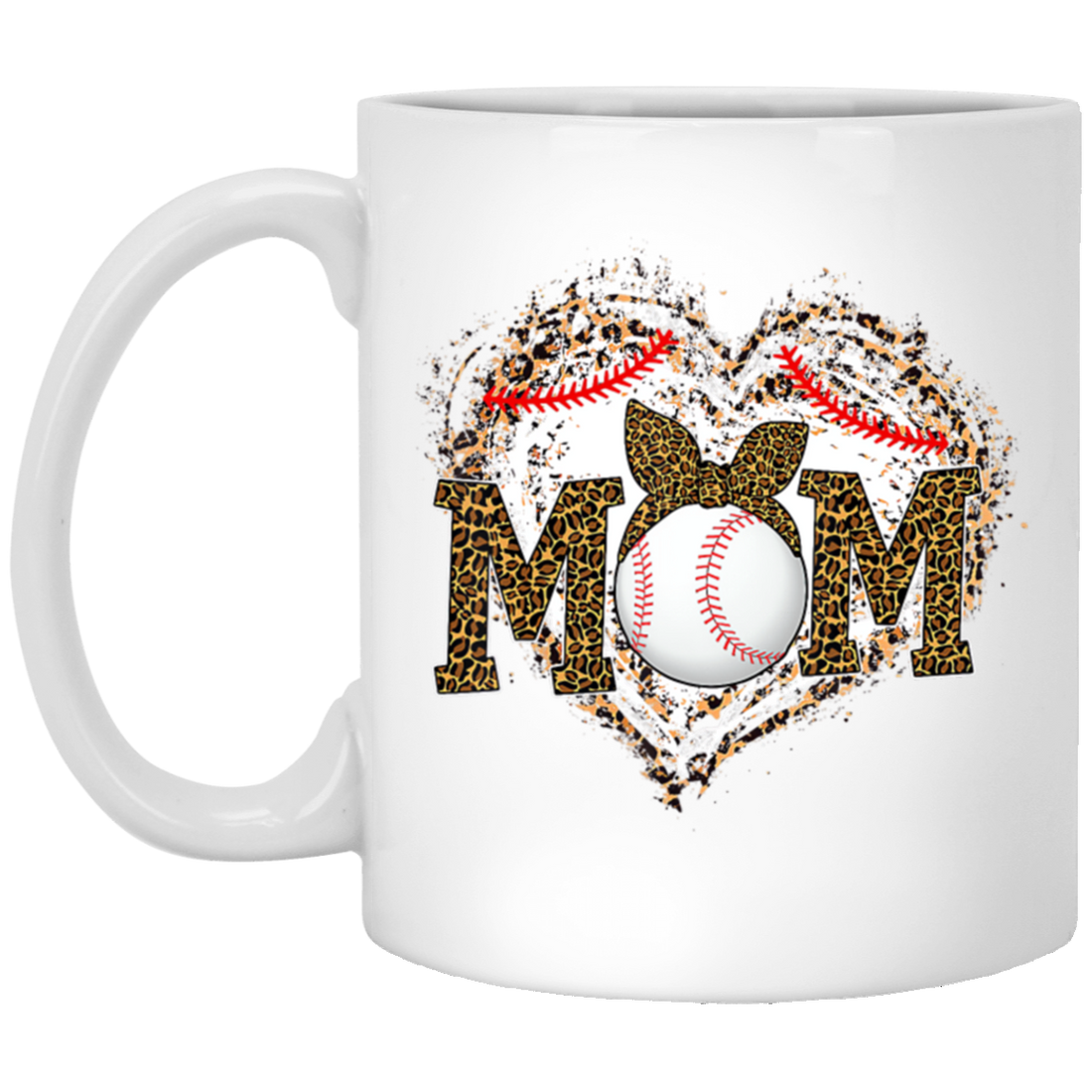 Funny Baseball Mom, Leopard Heart Mom, Ball Sport Lover Gift, Leopard Baseball White Mug