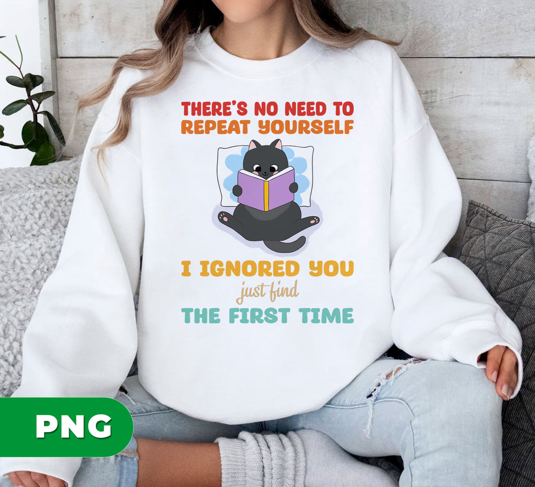 Funny Black Cat PNG Reading Book with Sarcastic Quote I Ignored You the First Time, Sassy Nerdy Pet Humor Art, PNG For Shirts, PNG Sublimation