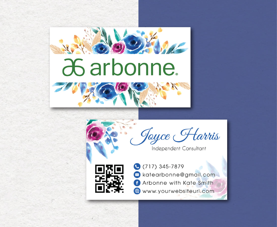 Flowers Arbonne Business Card, Personalized Arbonne QR Code Business Cards AB01. This listing is for...