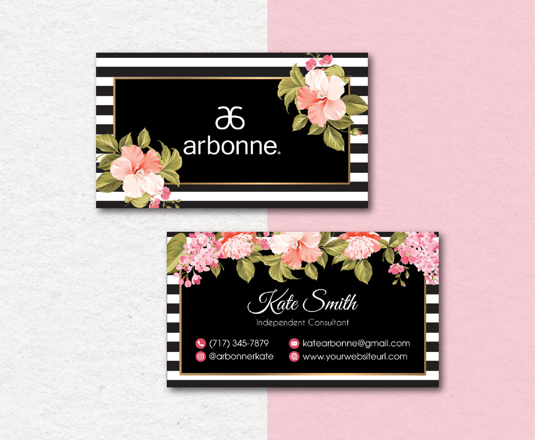 Black Arbonne Business Card, Personalized Arbonne Business Cards Flower Style AB02. This listing is for...