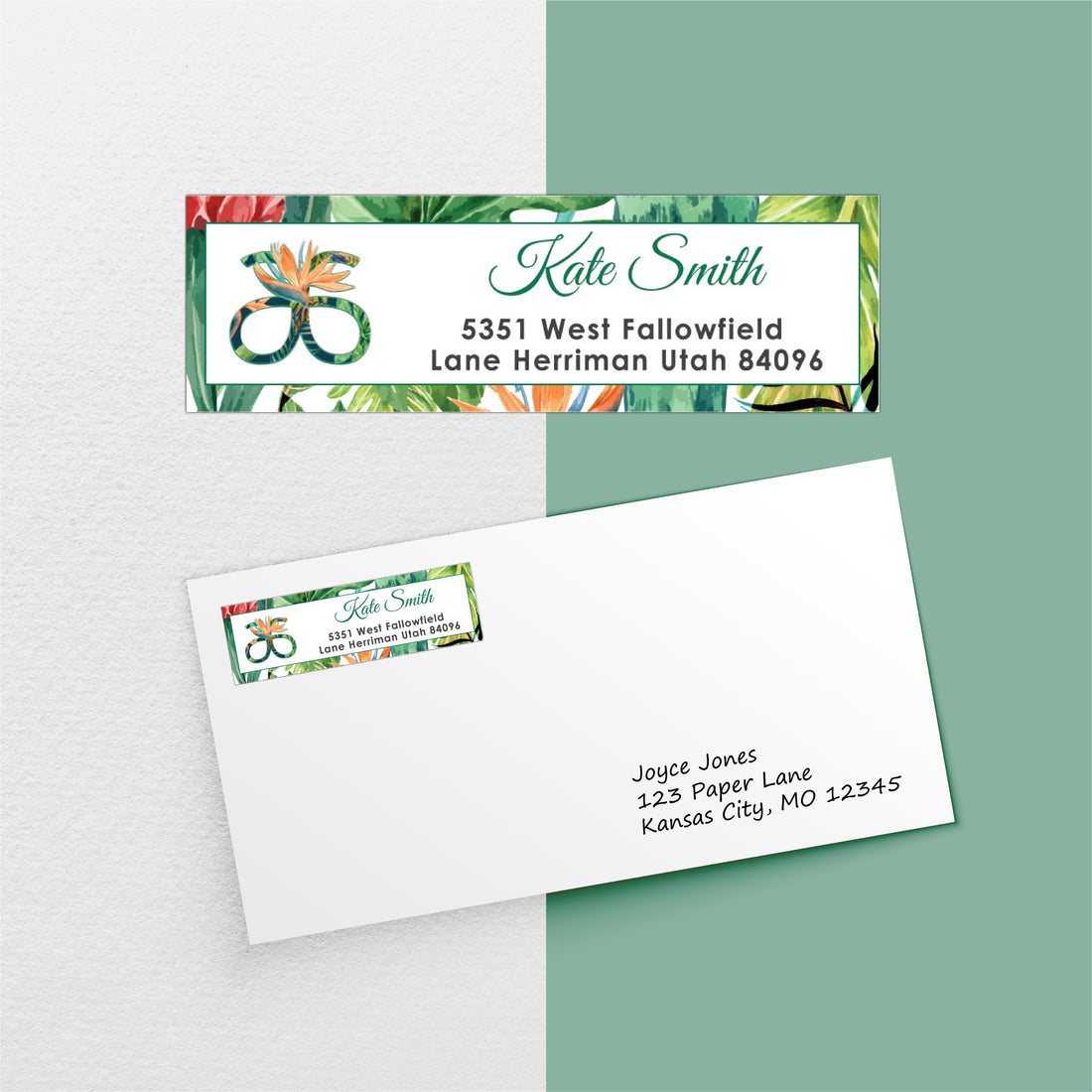 Tropical Leaf And Flowers Address Label Card, Personalized Arbonne Business Cards AB121