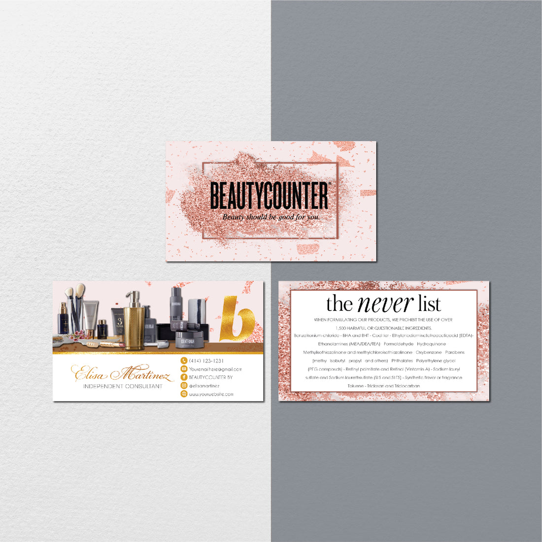 BeautyCounter Business Cards Design, Personalized BeautyCounter Cards, BeautyCounter Marketing Bundle. We personalized your card and send ready-printing file to you. So you can print as many as you want, anywhere you choose.