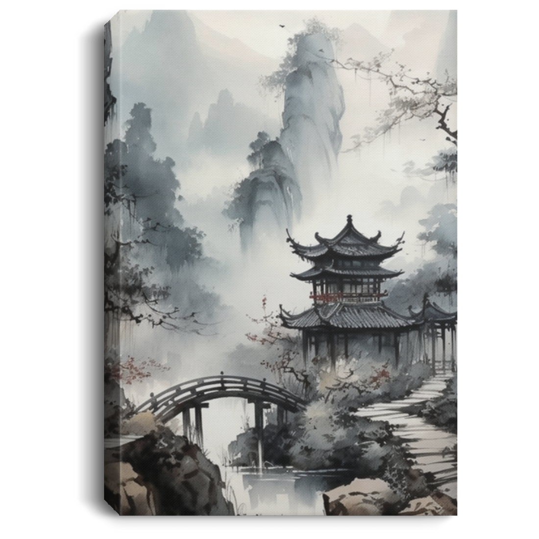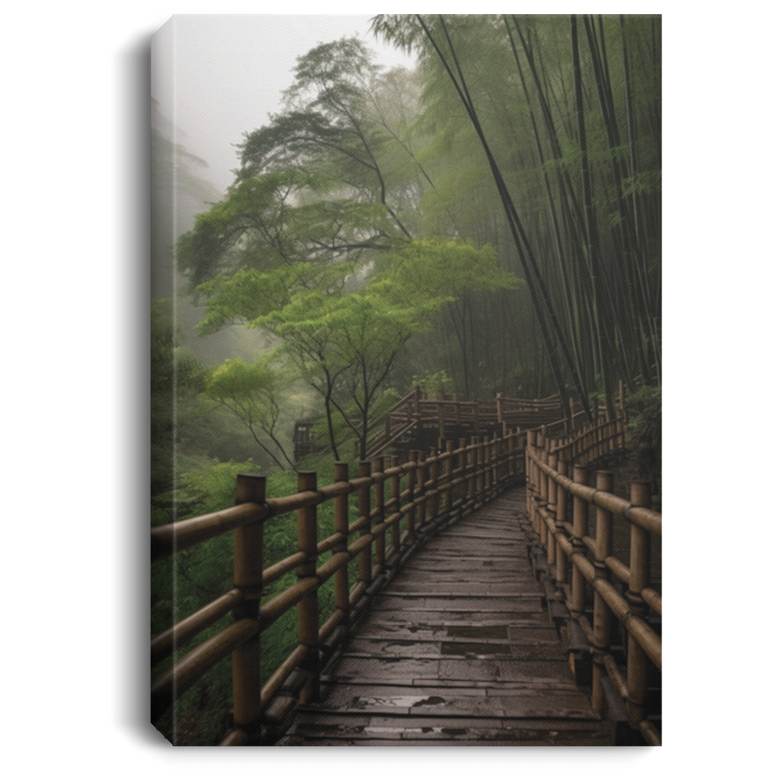 Drizzle In Bamboo Forest, Endless Mountain, Small Bridge In The Forest Canvas