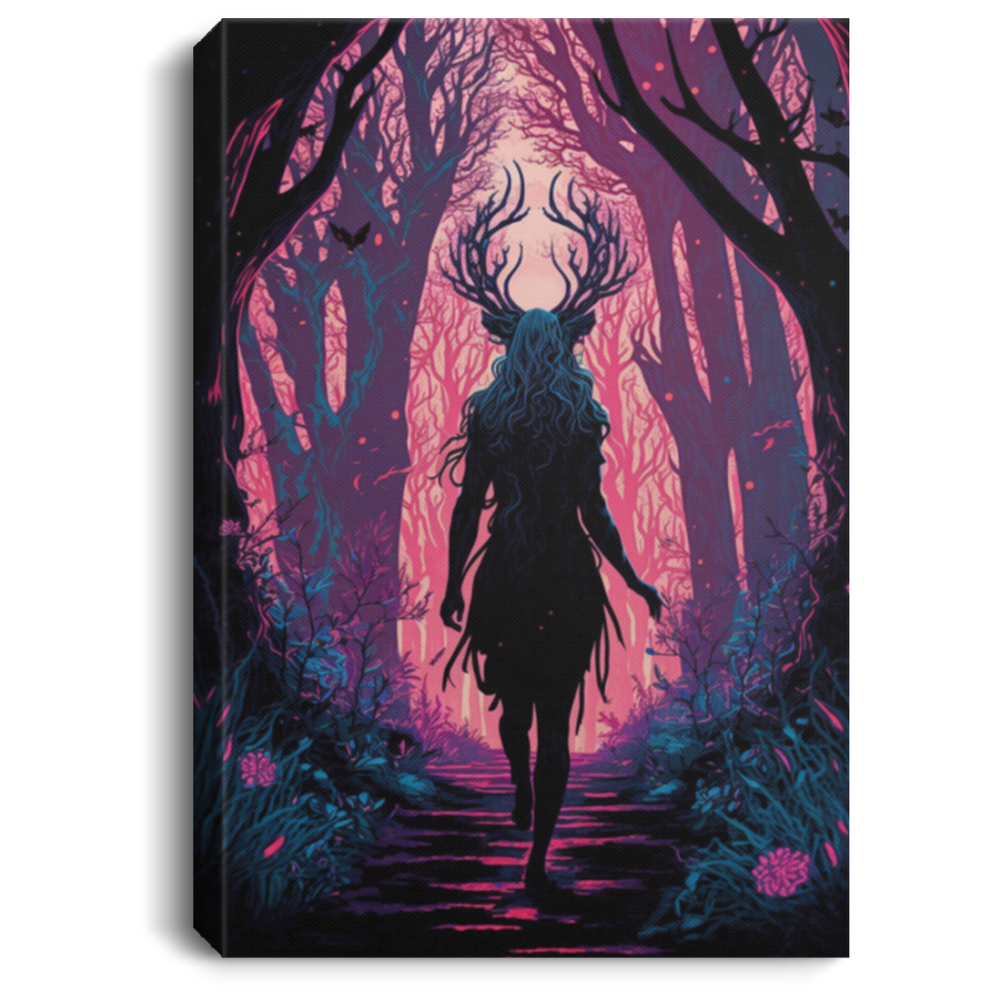 Dusky Hued Lady Satan Walking Through Psychedelic Forest Canvas