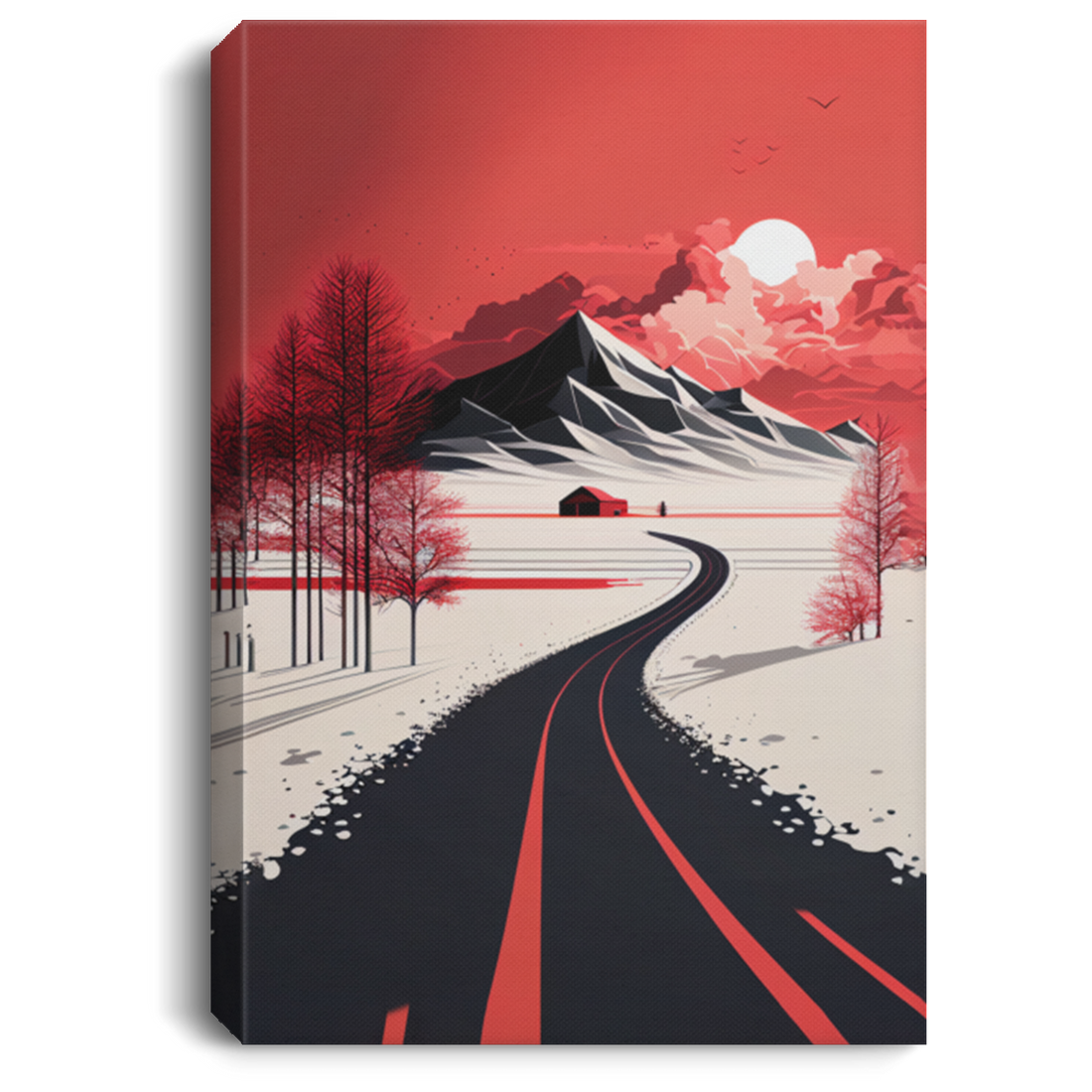 Stunning Art Landscape, Minimalism, Red And White Canvas