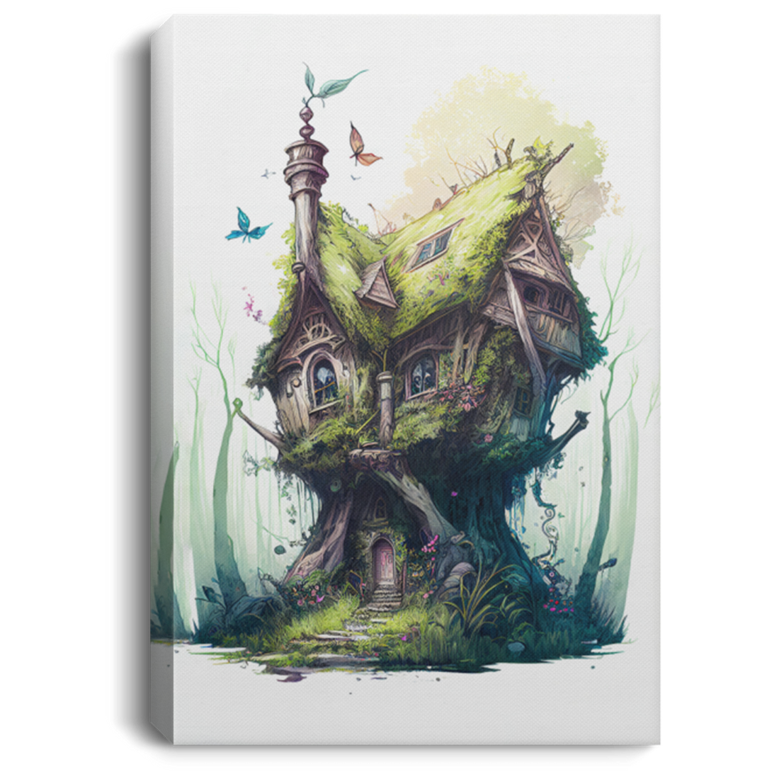 This Overgrown Fantasy Fairy House-Fairy Tree Houses Canvas is a beautiful and unique piece of...