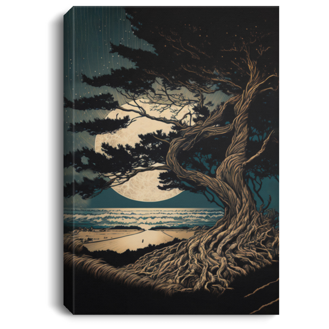 Moon And Giant Cedar Tree With Branches Into The Stars