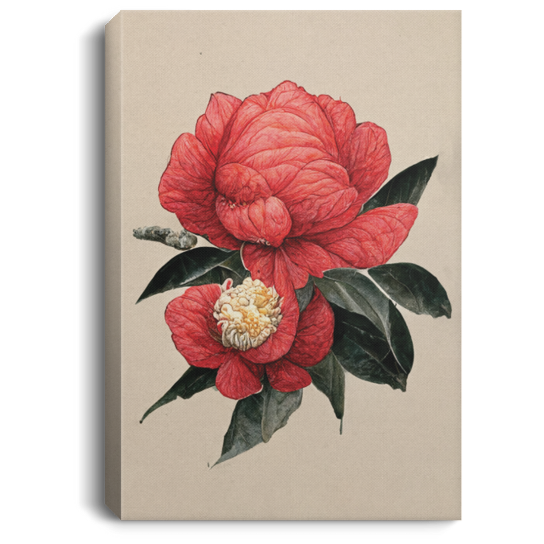 Elegant Camellia Flowers, Red Camellia Retro Watercolor Style
