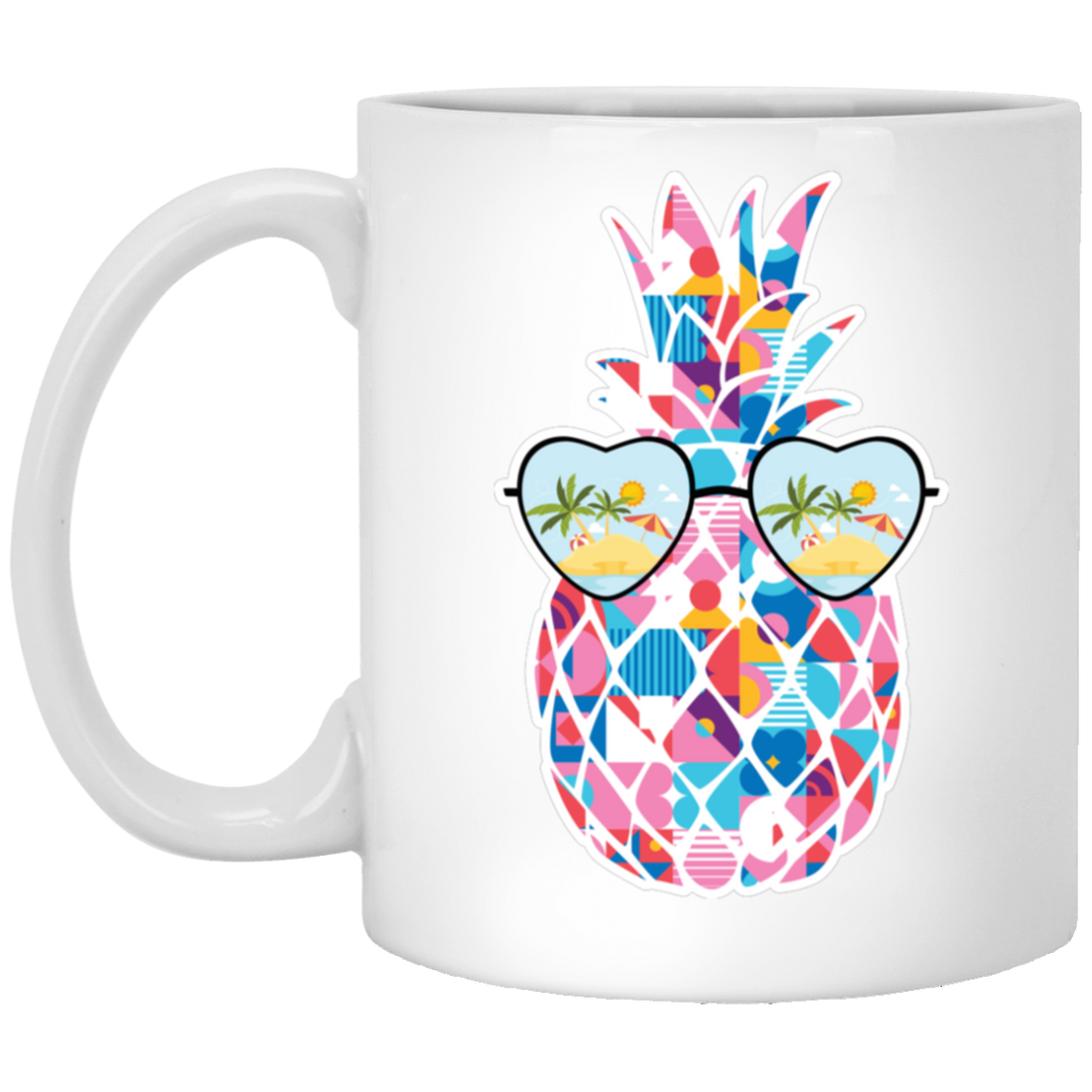 Watercolor Pineapple, Heart Sunglasses, Summer Vibes, Xmas Vibe White Mug
