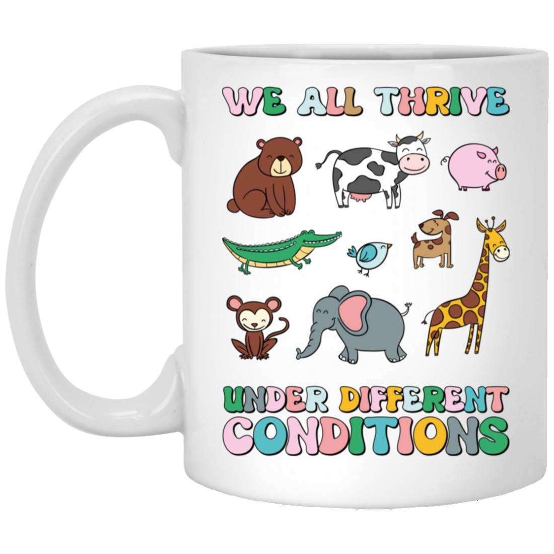 We All Thrive Under Different Conditions, Love Animals White Mug