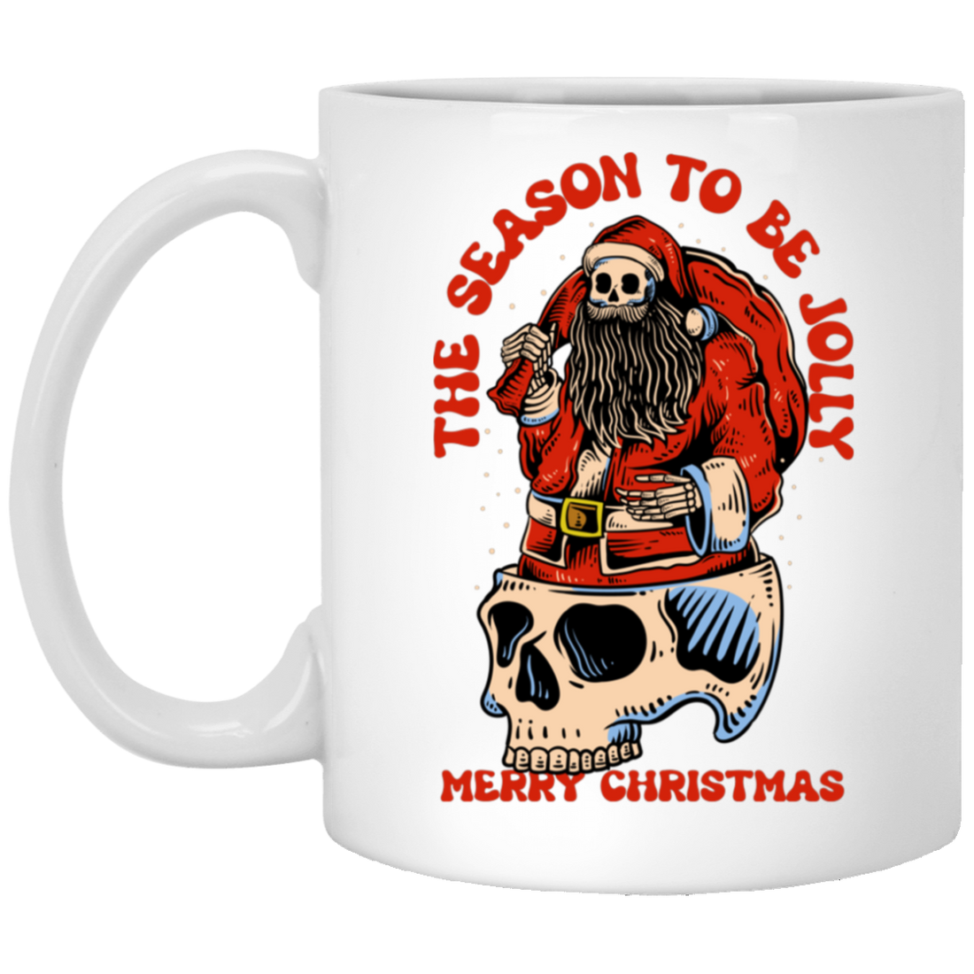 The Season To Be Jolly, Merry Christmas, Santa Skeleton White Mug