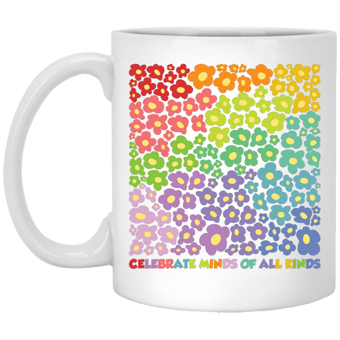 Celebrate Minds Of All Kinds, Colorfull Flower White Mug