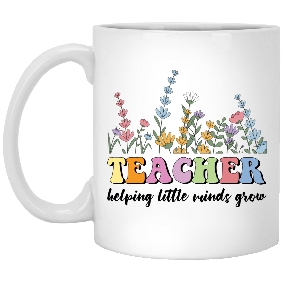 Teacher Helping Little Minds Grow, Flowers For Teacher White Mug
