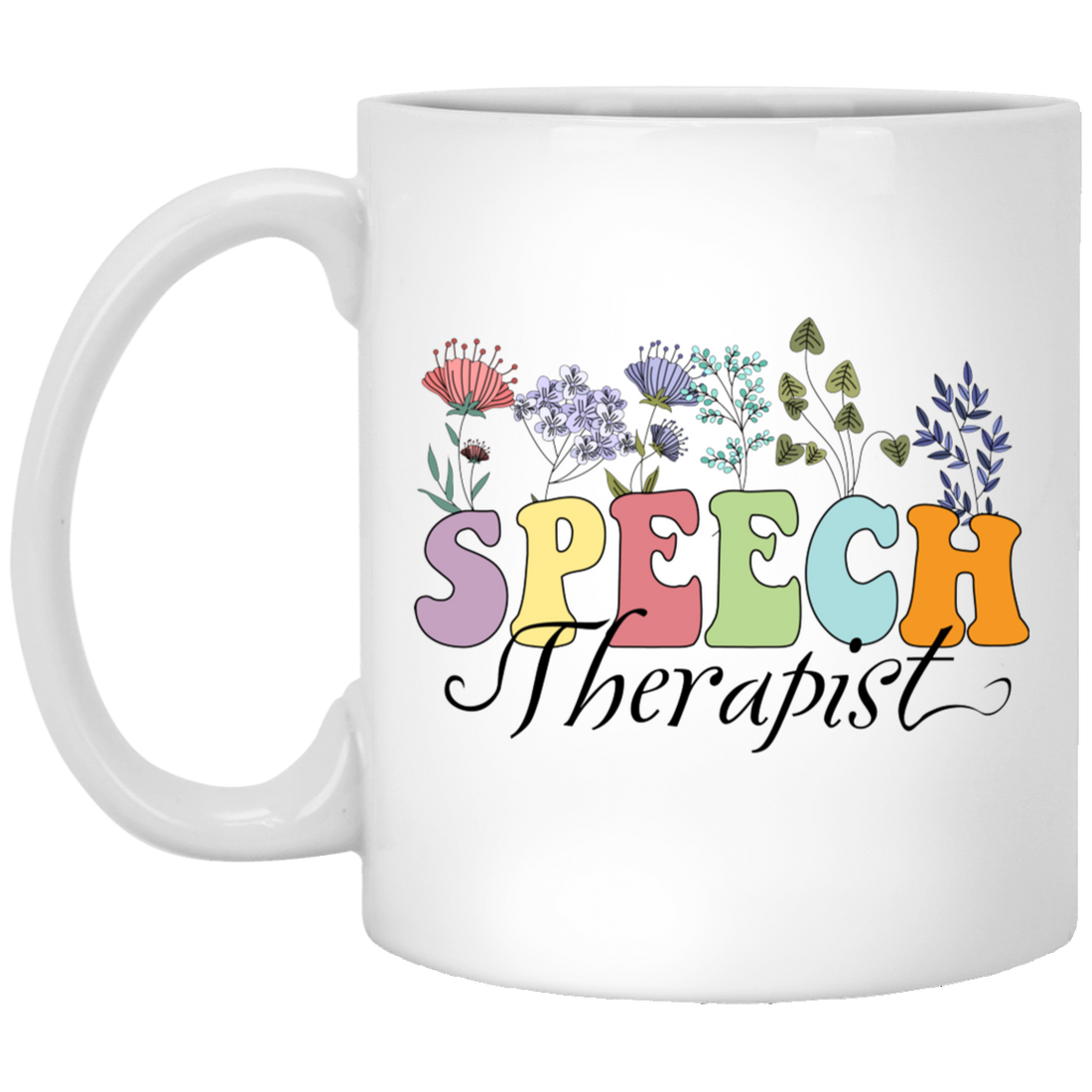 Speech Therapist, Colorful Flowers, Plant Therapist White Mug