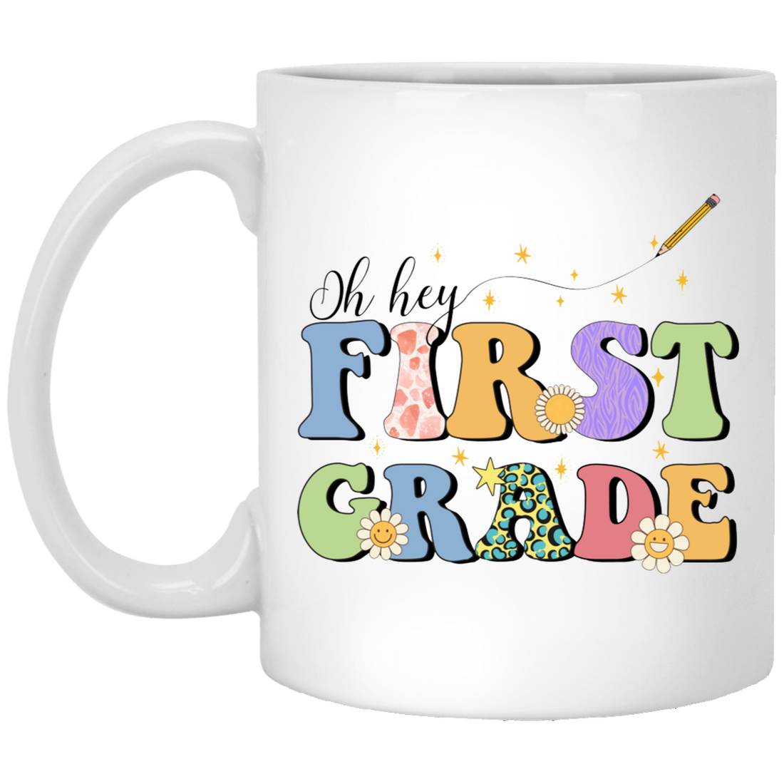 Oh Hey First Grade, Groovy First Grade, Back To School White Mug
