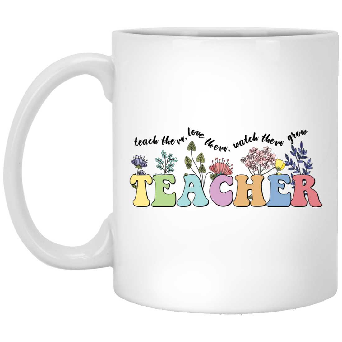 Teach Them, Love Them, Watch Them Grow, Groovy Teacher White Mug
