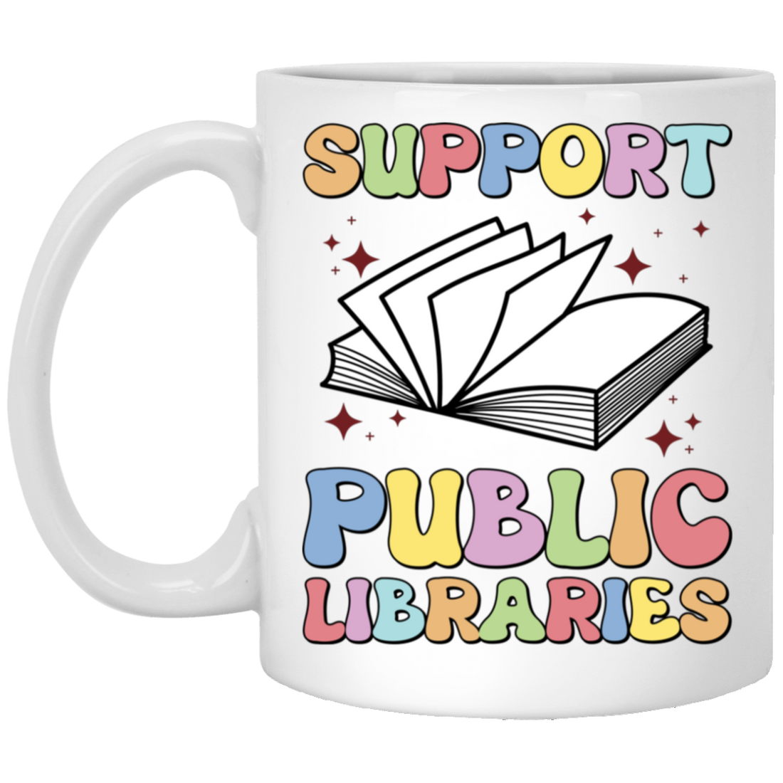 Support Public Libraries, Love Read, Groovy Bookworm White Mug