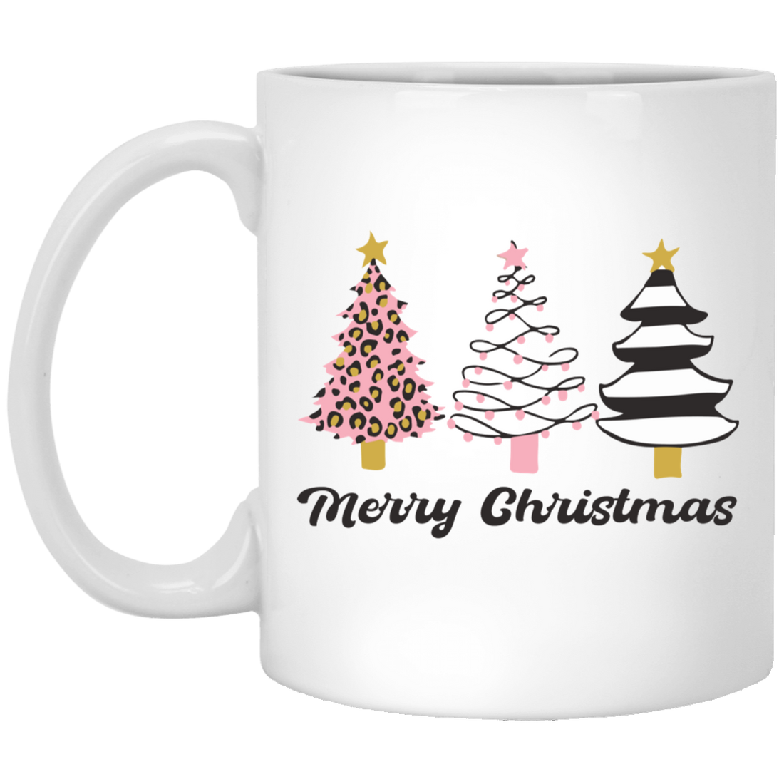 Black And Pink Christmas, Leopard Xmas Tree, Pink Xmas Tree, Merry Christmas, Trendy Christmas White Mug