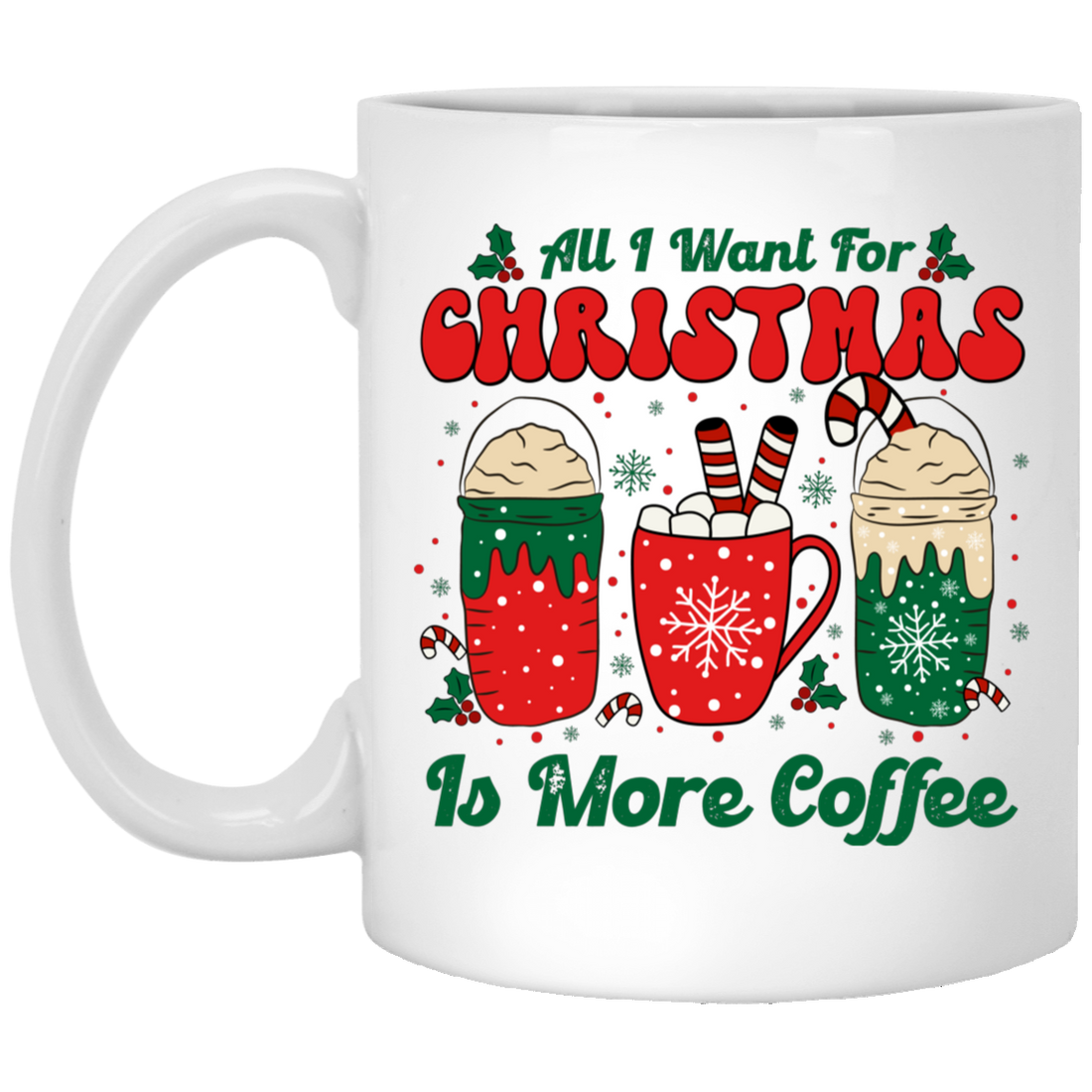 All I Want For Christmas Is More Coffee, Coffee Lover, Coffee In Xmas, Merry Christmas, Trendy Christmas White Mug
