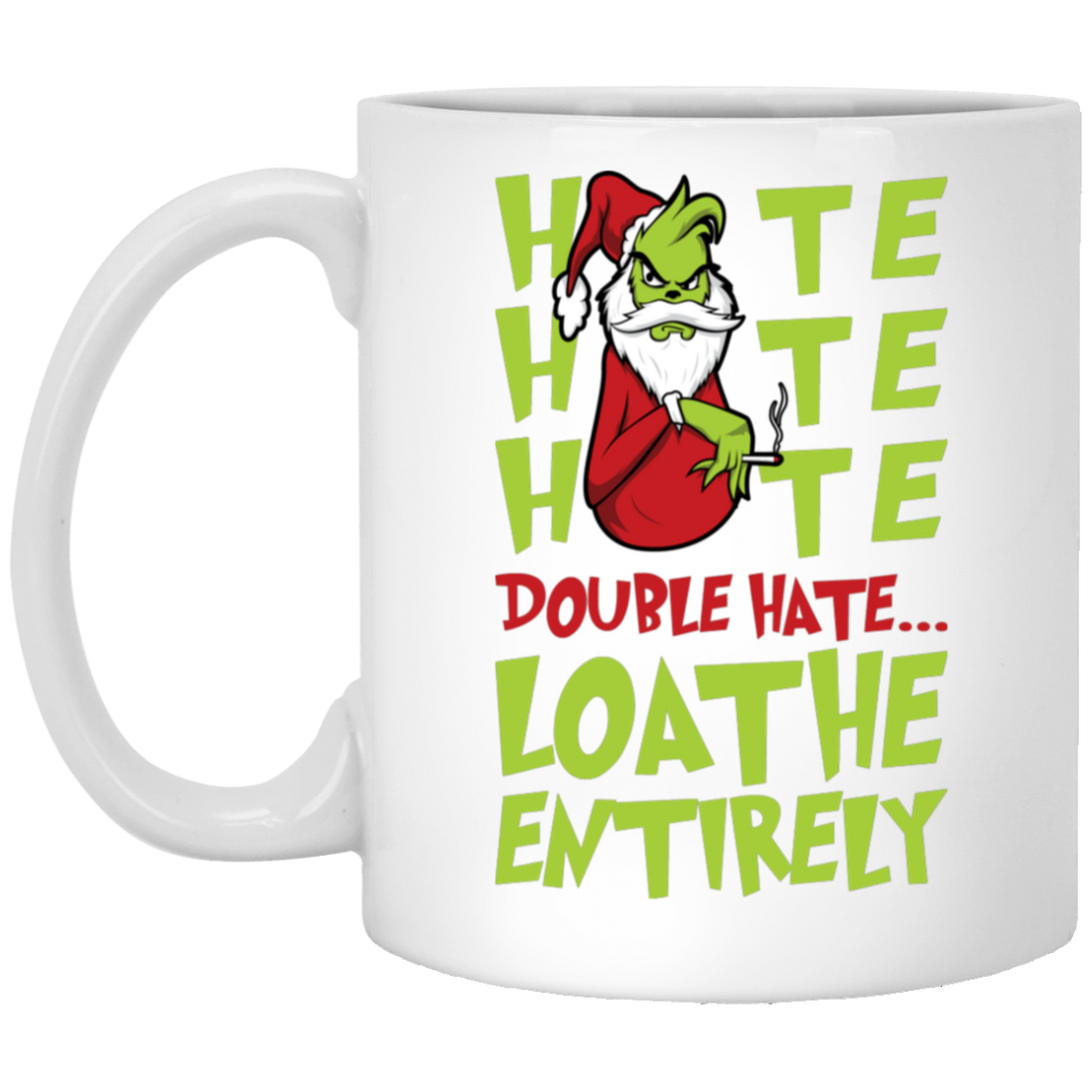 Hate Hate Hate, Double Hate, Loathe Entirely, Angry Grinch, Merry Christmas, Trendy Christmas White Mug