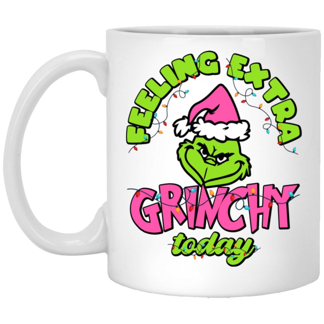 Feeling Extra Grinchy Today, Pink Grinchmas, Green Grinch, Merry Christmas, Trendy Christmas White Mug