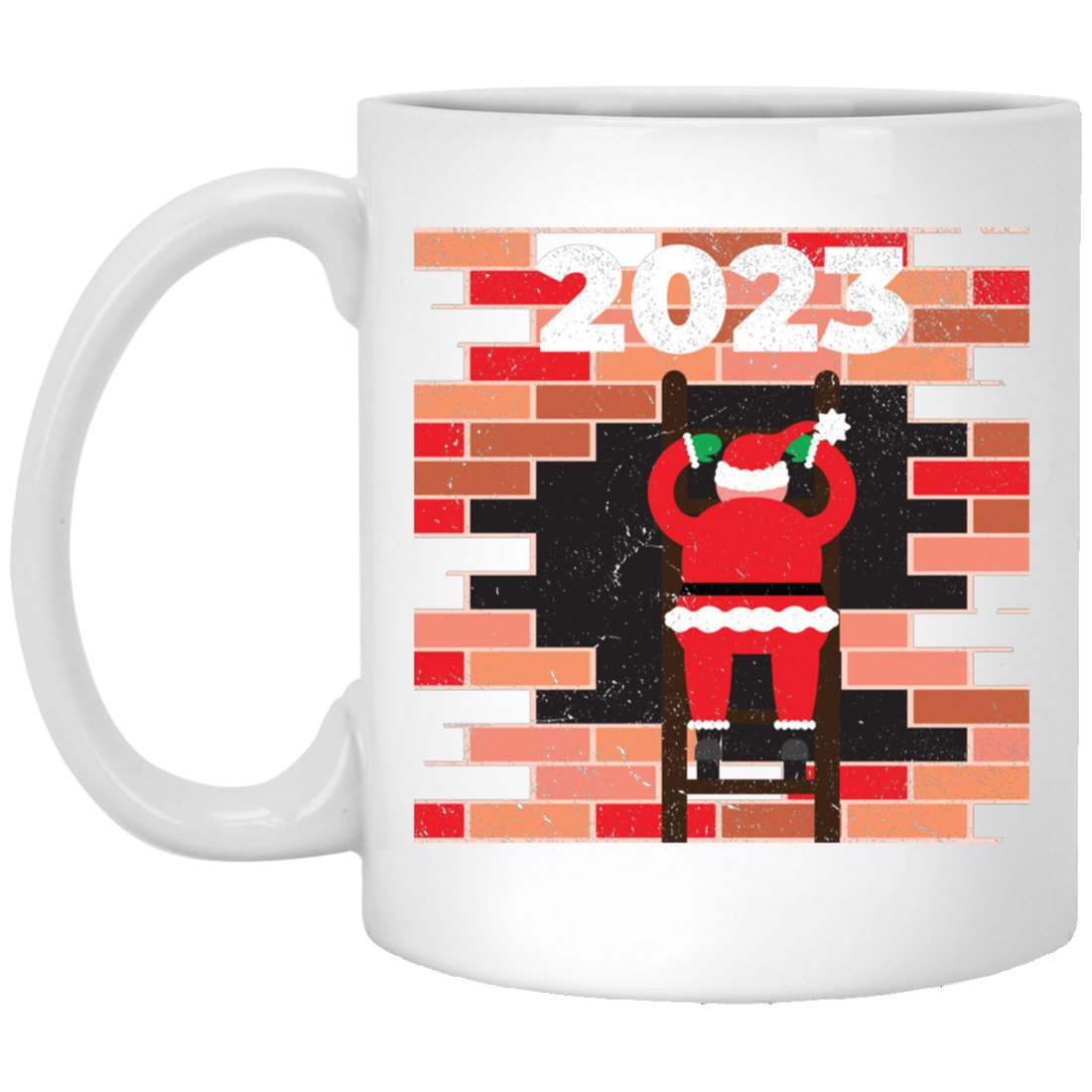 2023 Christmas, Build The Wall, Santa Building Wall, Merry Christmas, Trendy Christmas White Mug