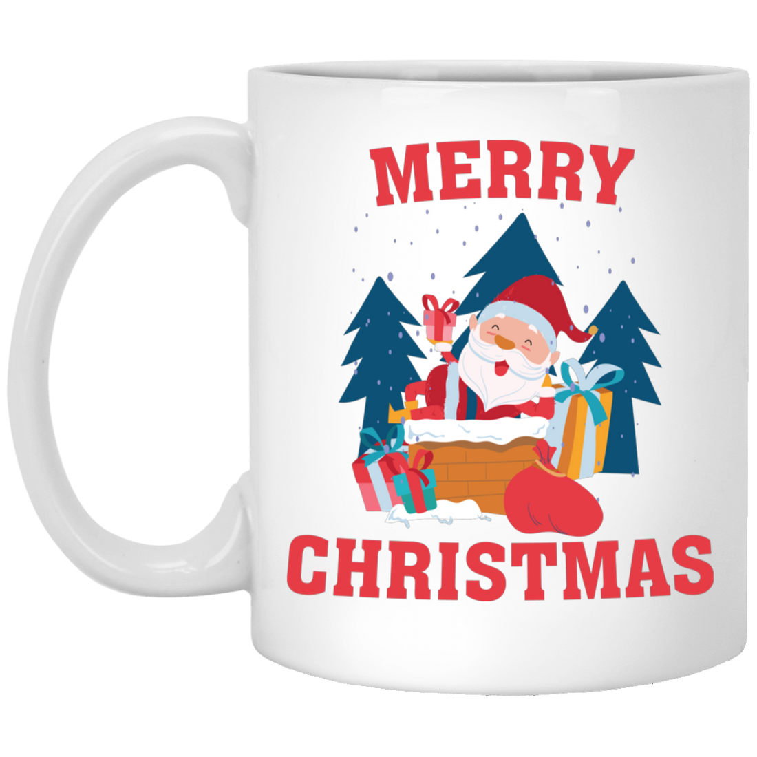 Cute Santa, Happy Santa, Funny Santa, Santa With Gift, Merry Christmas, Trendy Christmas White Mug