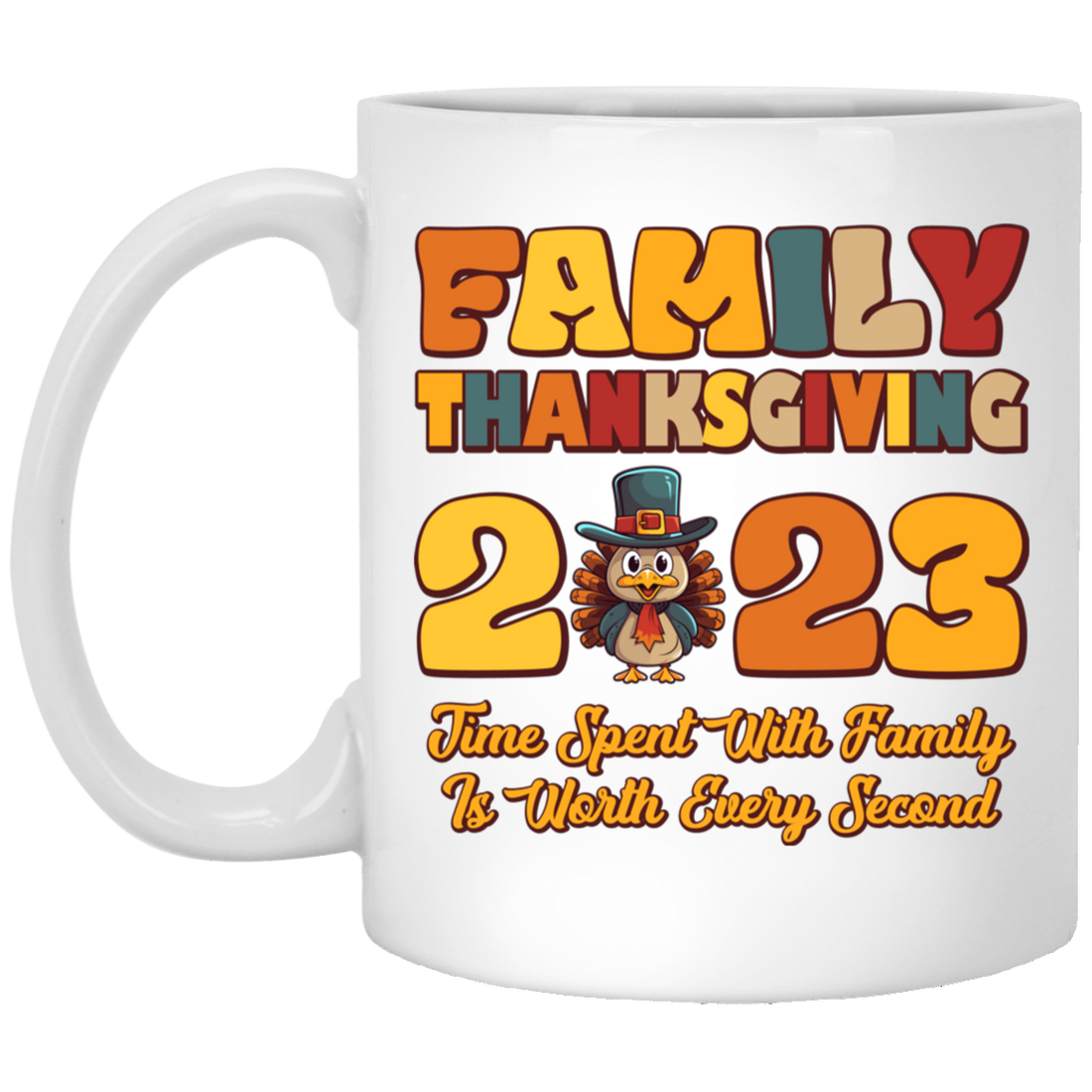 Family Thanksgiving 2023, Time Spent With Family Is Worth Every Second, Merry Christmas, Trendy Christmas White Mug
