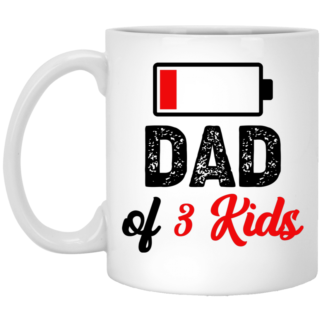 Dad Of 3 Kids, Out Of Battery, Father's Day Gift, Dad Gift White Mug