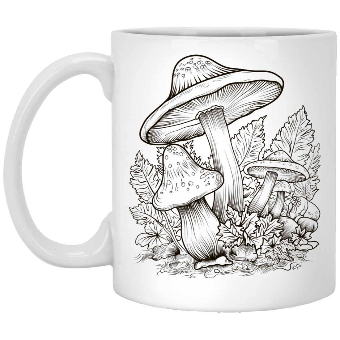 Aesthetic Mushroom, Cottagecore Design, Mushroom Lineart black White Mug