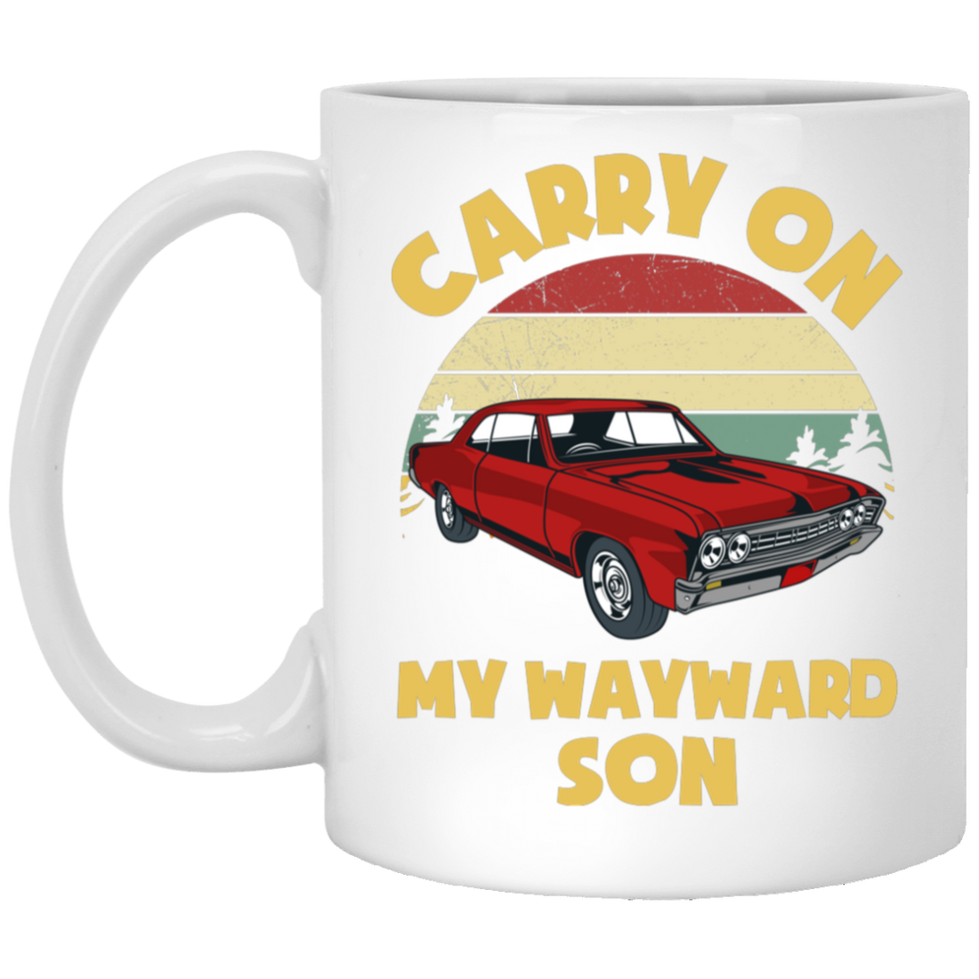 Carry On My Wayward Son, Red Car, Classic Car White Mug