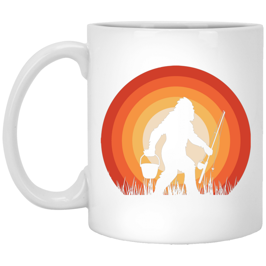 Big Foot Silhouette, Retro Big Foot, Big Foot Fishing White Mug