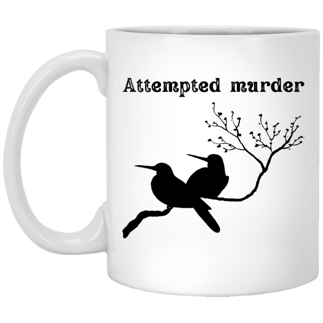 Attempted Murder, Couple Birds, Love Birds Silhouette White Mug