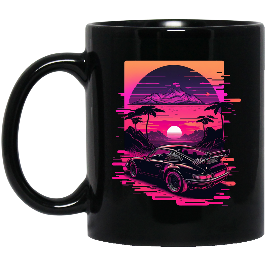 Race Car, Car Lover, Racing Car In Neon, Best Car Gift, Car On Race Black Mug