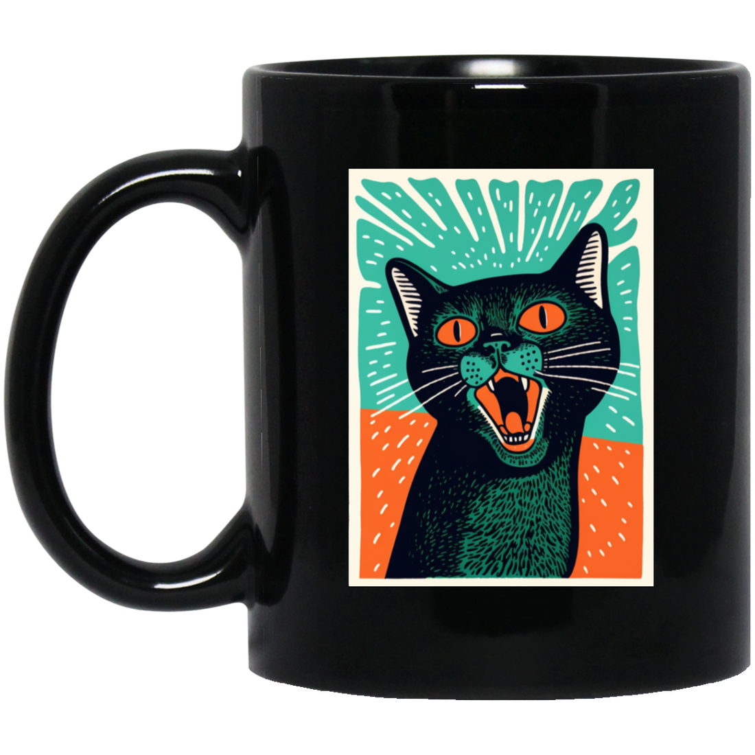 Meowing Love Gift, Cat In Retro Style, Lovely Cat, Funny Cat Poster Black Mug